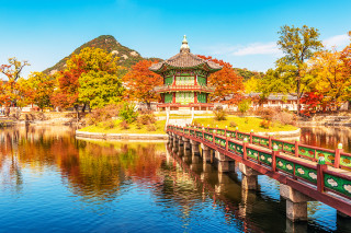 El Gyeongbokgung Palace en Seúl es el palacio más grande de la dinastía Joseong de Corea. Sus increíbles y opulentos jardines como el pabellón Hwangwonjeong, son perfectos para observar la arquitectura tradicional y los hermosos colores de otoño al mismo tiempo.